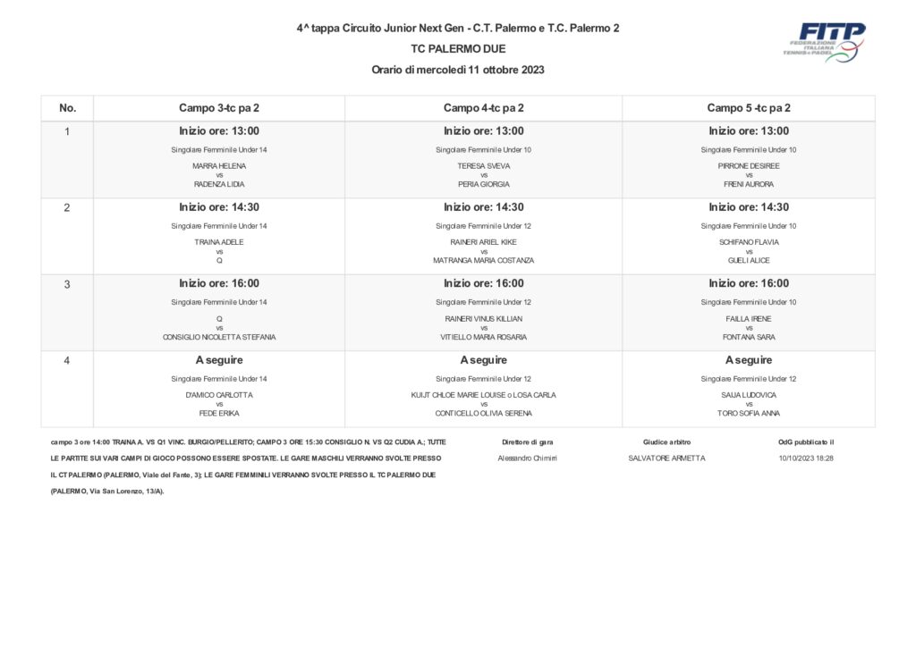 4^ Tappa Circuito Junior Next Gen Italia (Ct Palermo – Tc2)