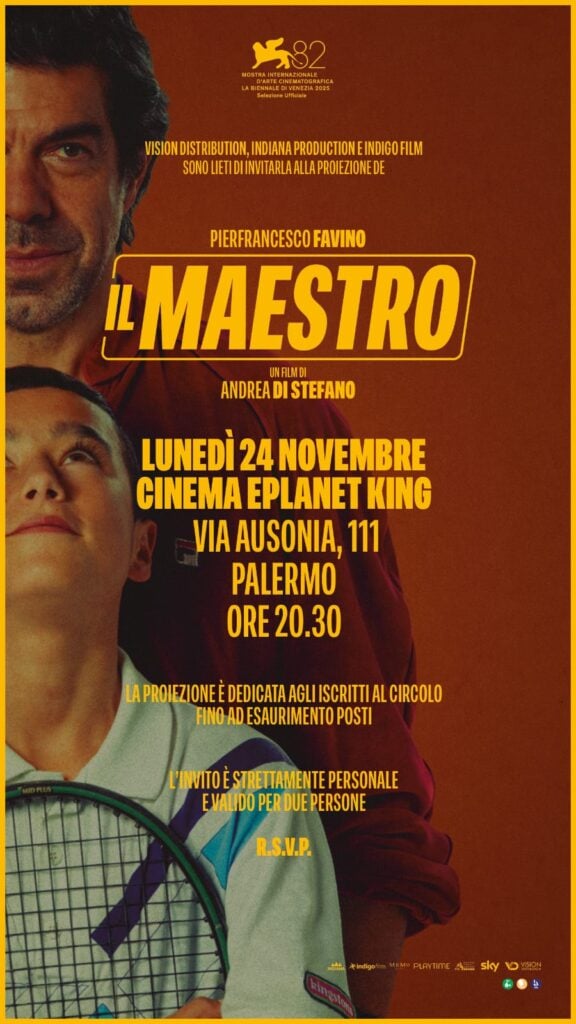 La produzione del film “Il Maestro” con Pierfrancesco Favino, per la regia di Andrea Di Stefano, ha invitato i soci del nostro circolo ad assistere alla proiezione lunedì 24 novembre al cinema King di via Ausonia 111.