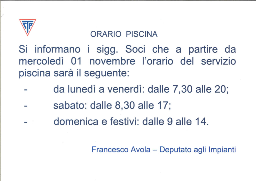 Orario Piscina