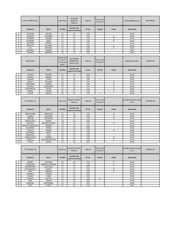 Domenica 18 febbraio scatta la fase a gironi regionale della serie C maschile di tennis. Ct Palermo al via con due compagini che giocheranno entrambe fuori casa all’esordio rispettivamente a Canicattì la formazione “a” e al Kalaja quella “b”.
