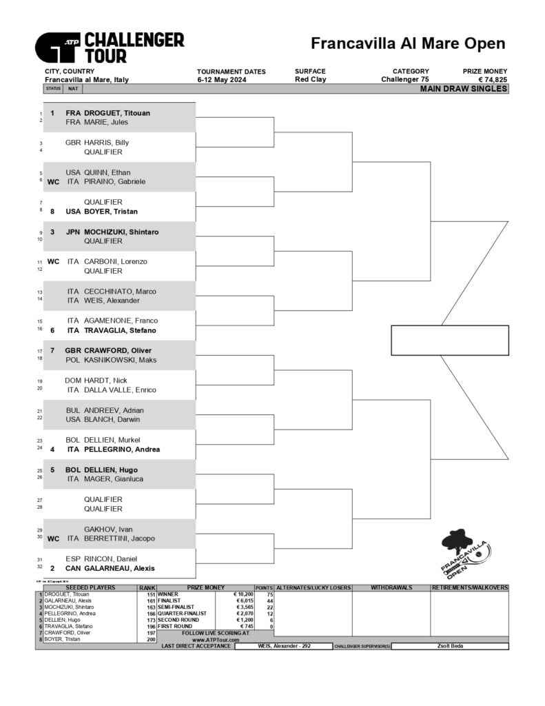 Gabriele Piraino prenderà parte, grazie ad una wild card, al tabellone principale del Challenger 75 sul rosso di Francavilla al Mare. Il main draw scatterà il 6 maggio.