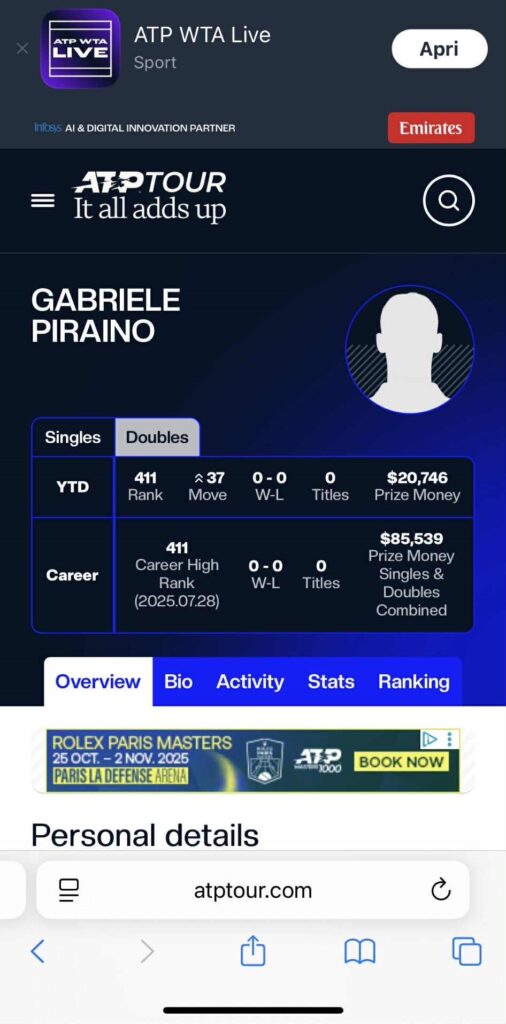Il 21enne mancino, in questa stagione, ha messo in bacheca le prove Itf di Antalya, Santa Margherita di Pula e, proprio pochi giorni fa, quella di Gubbio. In totale, sono 5 i tornei vinti in carriera dal giocatore del team di serie A1.