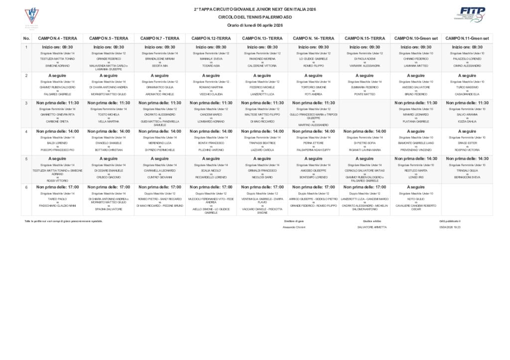 Ordine di gioco del 6 aprile e link per consultare i tabelloni