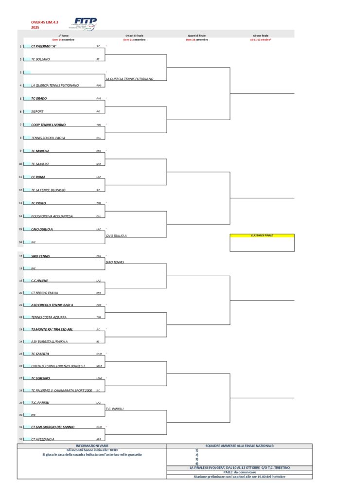 Tabellone nazionale over 45 limitato 4.3