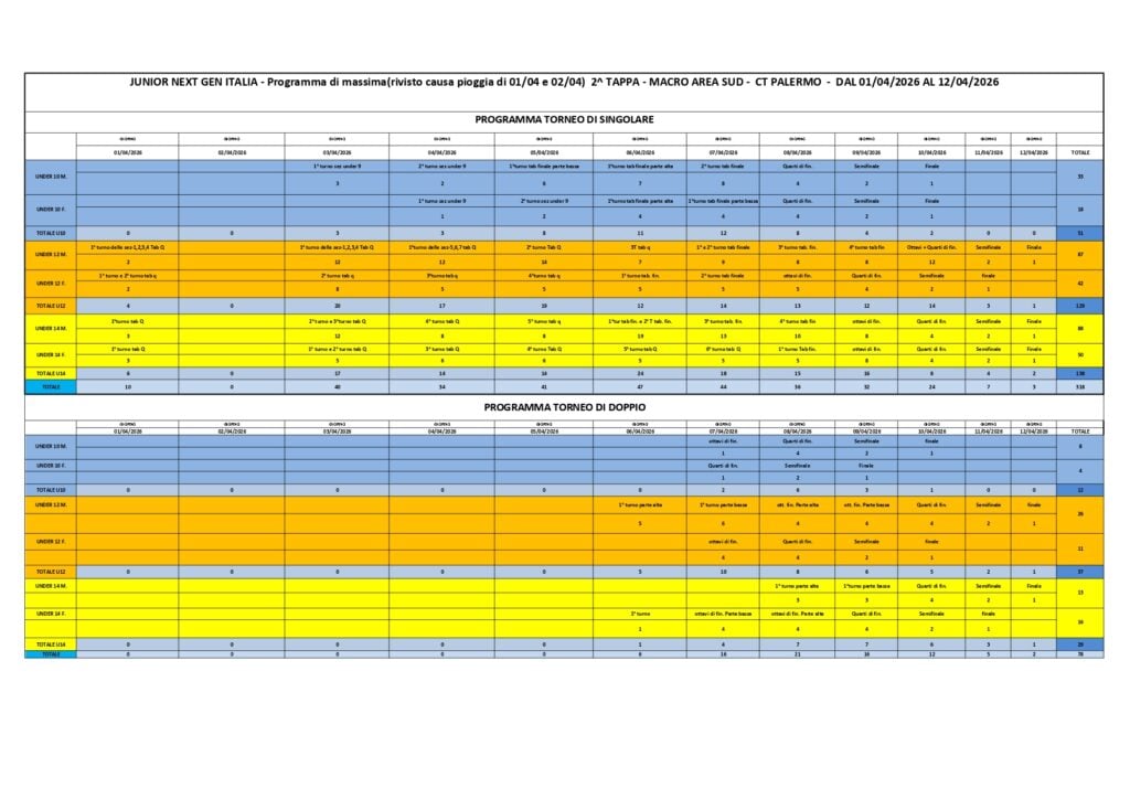 Torneo Junior Next Gen Italia: programmazione generale riformulata